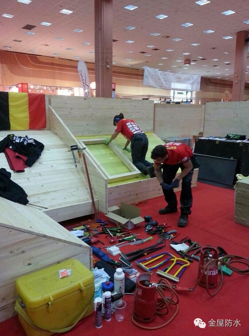 本届大赛是中国第一次参加国际屋面大赛。协会派出去年中国建筑防水行业职业大赛冠军东方雨虹队的2名20出头的青年工人,代表中国屋面界参加平屋面项目的比赛。同时,协会派出观摩团全程考察学习大赛各项比赛。